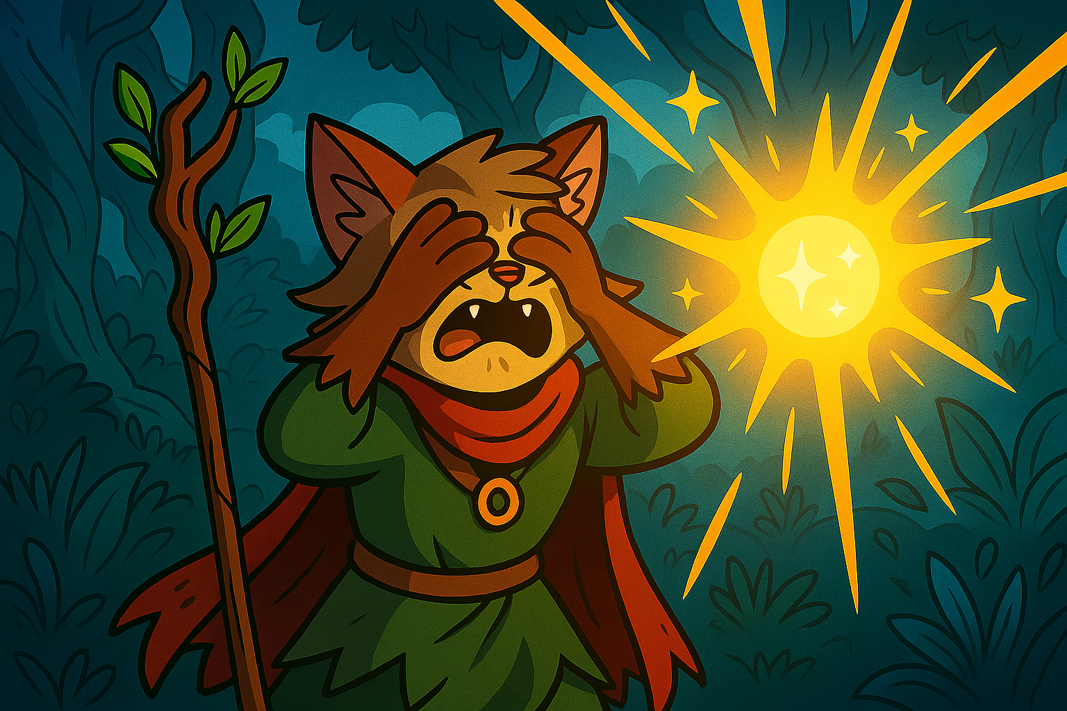Пример: ведьма колдовала над котлом, и взрыв зелья плеснул ей в лицо – на глазах пелена, ведьма Слепа на 1 минуту. Каждый шаг для неё – риск оступиться. К счастью, союзник успевает подоспеть ей на помощь и вывести из опасной зоны, пока зрение не вернётся.